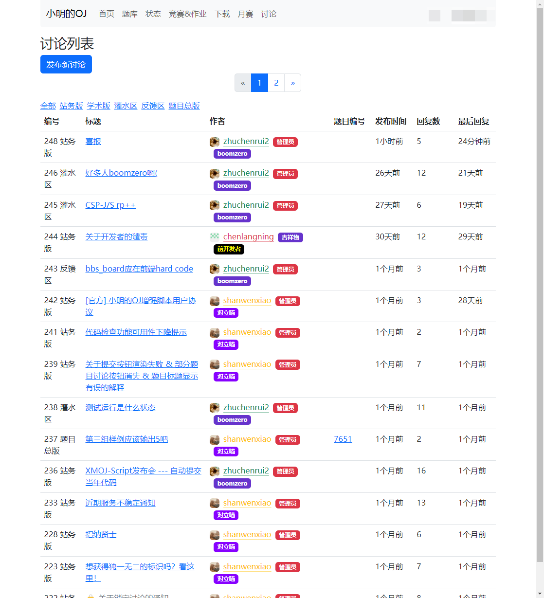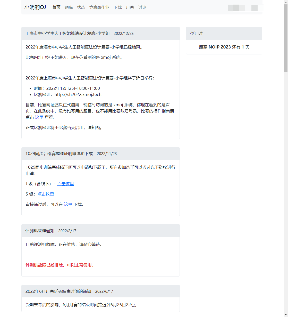 小明的OJ增强脚本是一个功能强大的浏览器扩展,旨在提升用户在小明的OJ(某虚拟在线竞赛平台)上的使用体验。 该脚本通过添加多种实用功能和界面优化,使用户能够更高效地参与竞赛、管理代码和享受更好的界面交互。