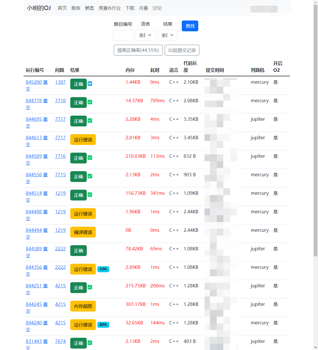 通过小明的OJ增强脚本,您将能够更便捷地参与竞赛,提高AC率,管理代码,优化学习体验,同时享受美化界面带来的愉悦感受。 无论是竞技还是学习,这个脚本都将成为您在小明的OJ平台上的得力助手。 无论您是新手还是经验丰富的竞赛选手,小明的OJ都将为您的比赛体验带来前所未有的便利和效率。 立即安装并体验吧!